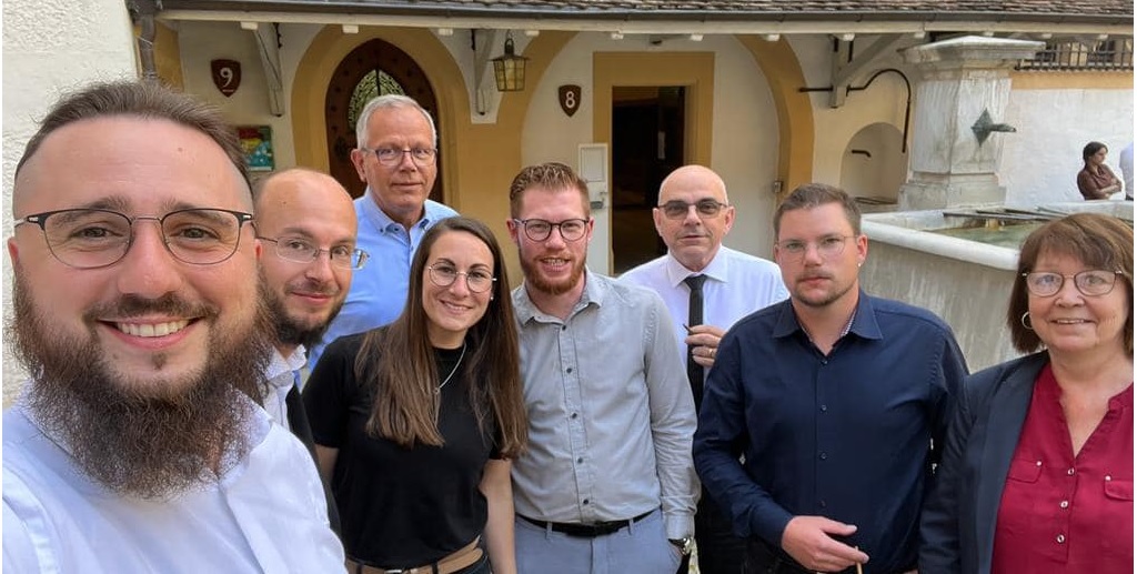 (photo : les Députés UDC au Grand Conseil neuchâtelois lors de la session des 3 et 4 mai 2022 ; de g. à d. Niels Rosselet-Christ, président du groupe, Damien Schär, député suppléant, Daniel Berger, député, Roxann Durini, députée, Arnaud Durini, député, Grégoire Cario, député, Quentin Geiser, député et Christiane Barbey-Weber, députée)
