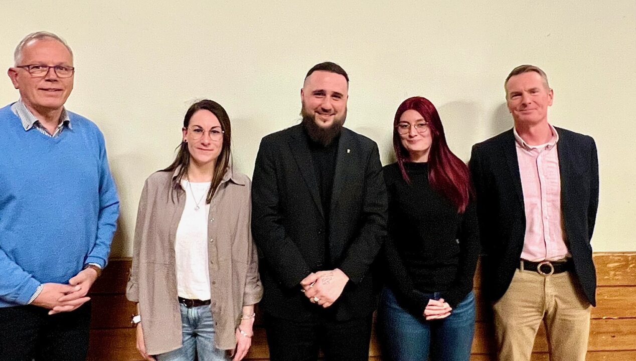 Le nouveau Bureau du parti, de g. à d. : Daniel Berger, vice-président et député ; Roxann Durini, présidente du groupe des députés ; Niels Rosselet-Christ, président de l’UDC Neuchâtel ; Estelle Matthey-Junod, co-présidente des Jeunes UDC NE ; Markus Schneider, vice-président
